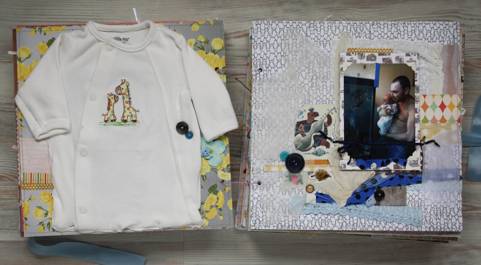 Разворот 2. На нем про роды, и про встречу с малышкой. И первая маленькая шапочка.